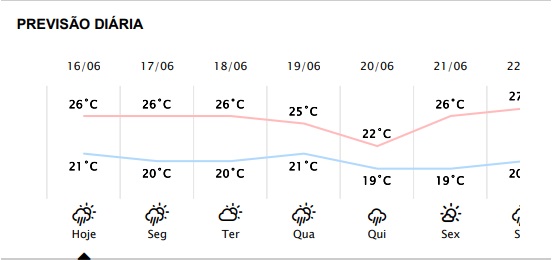 A semana promete ser muito chuvosa em Foz do Iguaçu, com temperaturas amenas, na faixa dos 26 graus.