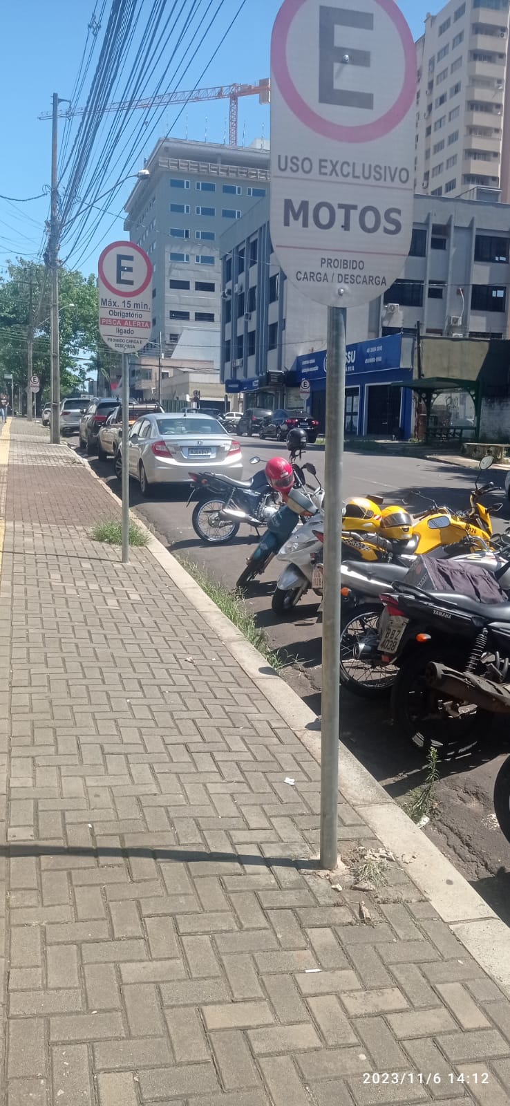 Motos estão ocupando vagas de estacionamento destinados a carros no centro de Foz