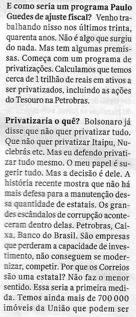Veja abaixo o fac-símile do trecho da entrevista de Guedes.