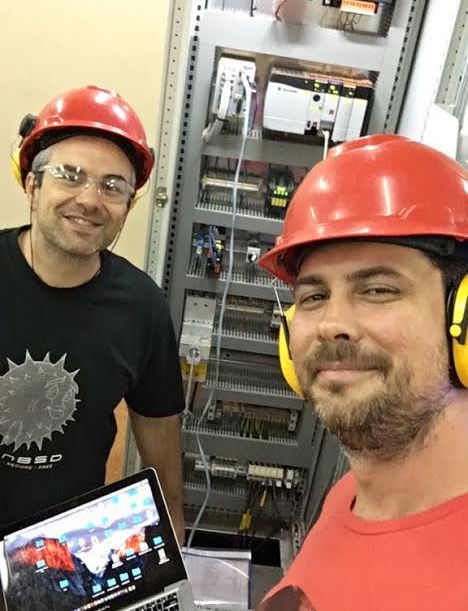 Na foto à esquerda, os funcionários da Datapar Anderson Lorenzon e Diego Schulz trabalham no desenvolvimento da infraestrutura de comunicação e automação.