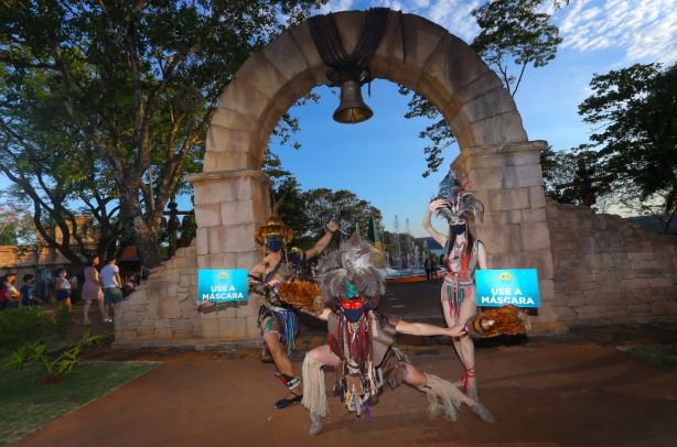 Zelo, magia e cuidados com os visitantes – O Marco das 3 Fronteiras faz o controle individual de acesso de todas as pessoas que visitam o atrativo, com uma barreira sanitária. Todos os visitantes, sem exceção, aferem a temperatura, recebem álcool gel para passar nas mãos e são orientados a passar os calçados no tapete sanitizante. Os profissionais também orientam sobre a obrigatoriedade do uso da máscara.