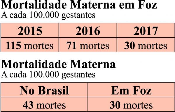 No no passado, o índice de Foz foi de 71 mortes a cada 100 mil gestantes, já em queda em relação a 2015, quando foram registradas 115 mortes a cada 100 mil.