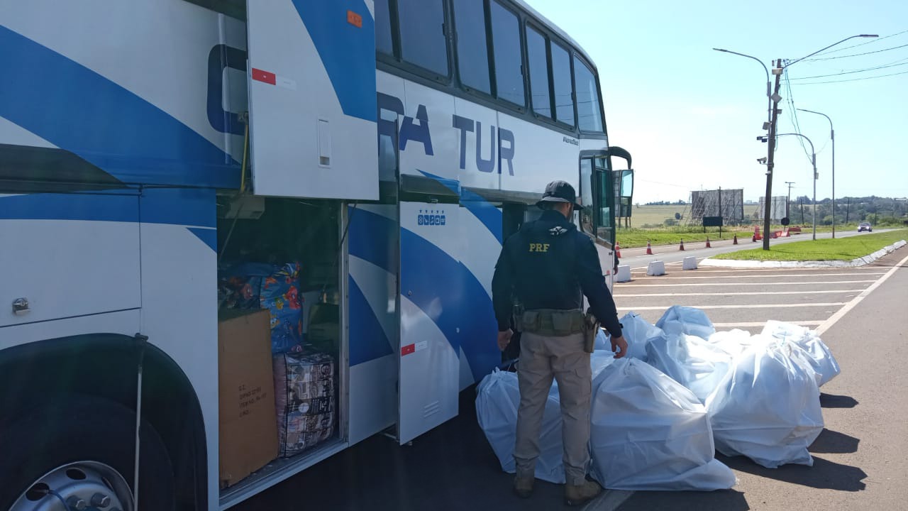 Por volta das 10h da manhã de hoje, no quilômetro 714 da BR-277, uma equipe da PRF deu ordem de parada ao condutor de um ônibus de ônibus de turismo. No veículo estavam 25 passageiros, além do motorista e de uma mulher que era encarregada pela viagem.