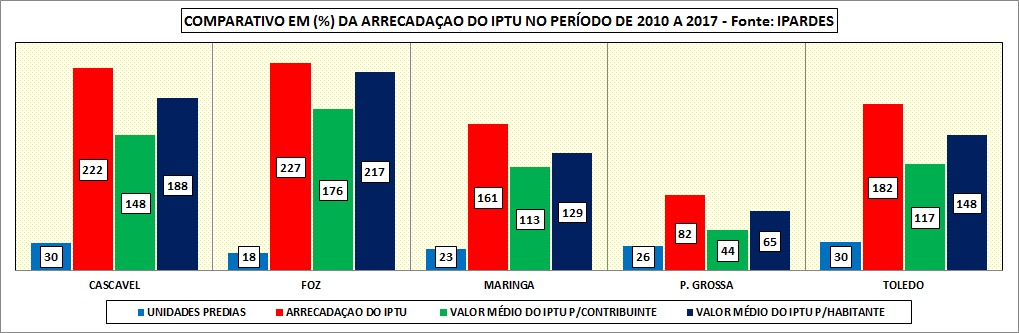 A pedido do Não Viu?, o professor Carlos Kossar, matemático e especialista em estatística, fez um levantamento sobre o IPTU cobrado pelas principais cidades do Paraná. O resultado você pode ver nos dois gráficos publicados abaixo do texto, que comprovam o arrocho que os prefeitos de Foz impuseram à população nos últimos 17 anos.