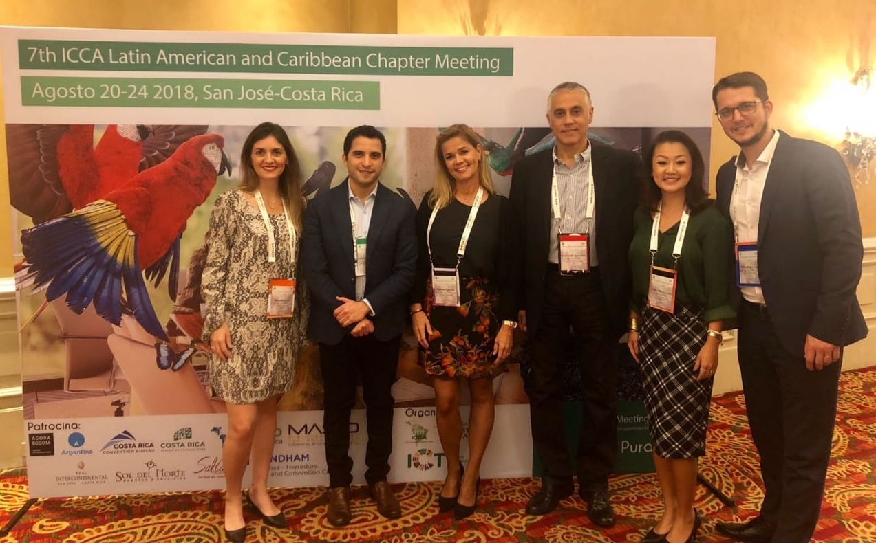 Amanda Papa, Santiago Gonzalez, Andrea Raeder, Fernando Brandão, Cintia Mari e Alexandre Jung, presentes na 7ª edição do Encontro Latino-Americano da ICCA, na Costa Rica