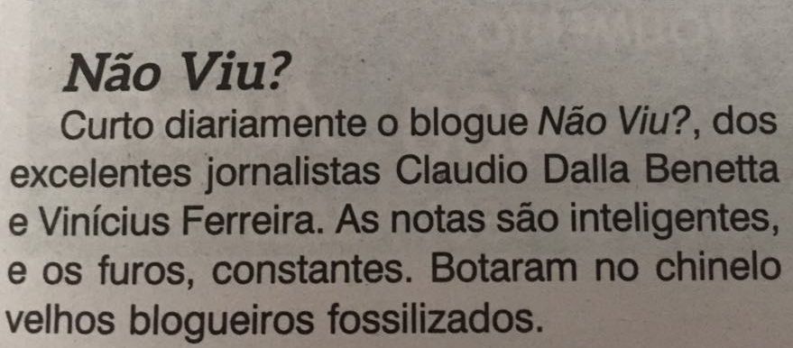 Elogio sempre cai bem, a qualquer hora. Ainda mais quando vem de quem manja do assunto. O jornalista Adelino de Souza publicou nesta quinta (11), na sua coluna “Toca do Leão” (a mais recente do jornal Gazeta Diário), um baita elogio ao blog. Está aí abaixo, pra confirmar.