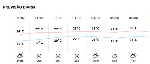 A partir de amanhã, quinta-feira (31), as temperaturas máximas em Foz do Iguaçu devem dar um salto dos 24 graus, previstos para esta quarta-feira, para 27 graus.