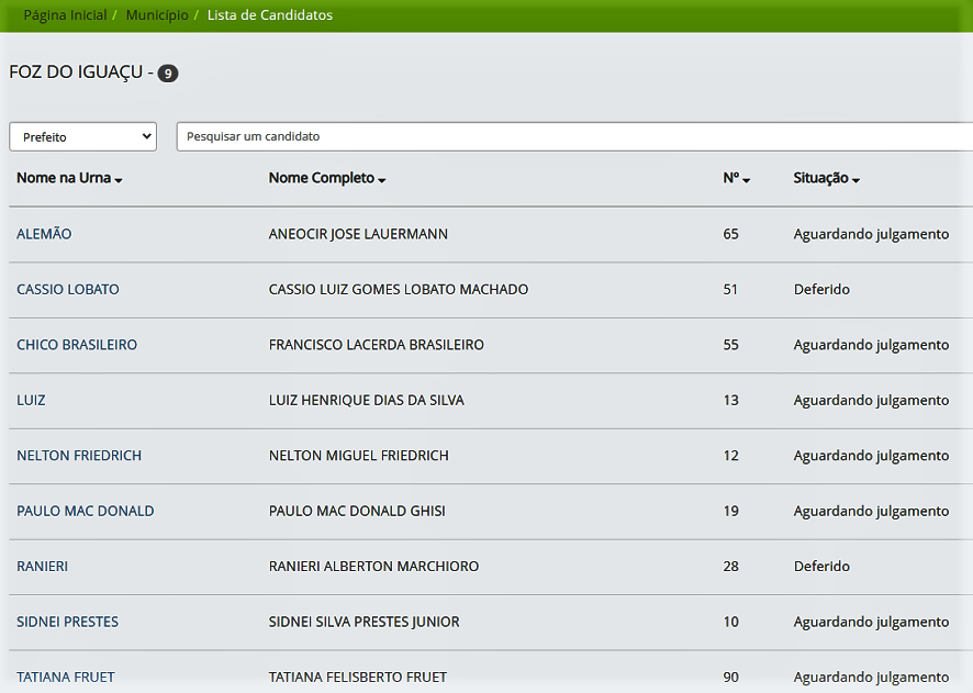 A Justiça Eleitoral tem até o dia 26 de outubro para aprovar ou não as candidaturas dos outros sete postulantes ao cargo de prefeito de Foz do Iguaçu.
