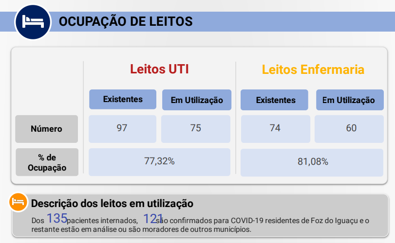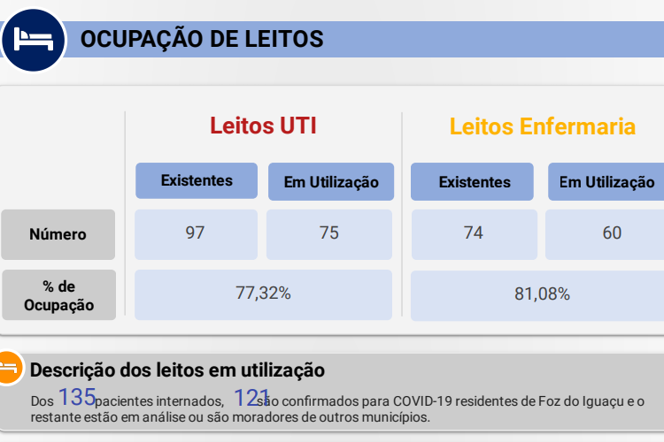 Nesta quinta-feira (10), 75 pacientes lutam contra a Covid-19 nas UTIs de Foz
