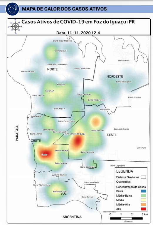 Nesta quinta-feira (12), Mapa do Calor revela onde estão concentrados os novos casos de Covid-19 em Foz