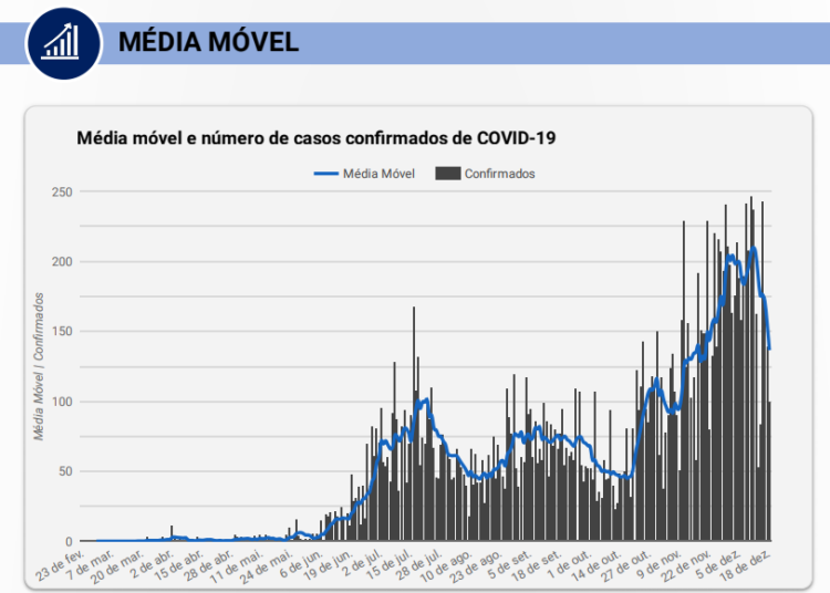 A Média Móvel é um indicador estatístico usado para saber se a tendência da pandemia vem aumentando, diminuindo ou está estagnada na cidade
