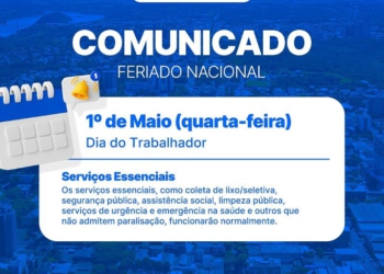 O feriado do Dia do Trabalhador, nesta quarta-feira (1º), não altera o funcionamento dos serviços considerados essenciais da Prefeitura de...