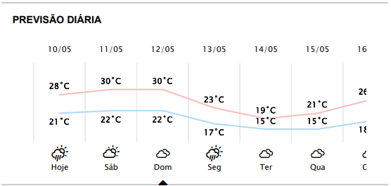 Para quem gosta de calor, uma má notícia: depois do calorão (faixa dos 30 graus) previsto para hoje (com previsão de pancadas de chuva), sábado e domingo, o friozinho começa a chegar na segunda-feira, dia 13 de maio, segundo as previsões do Simepar.