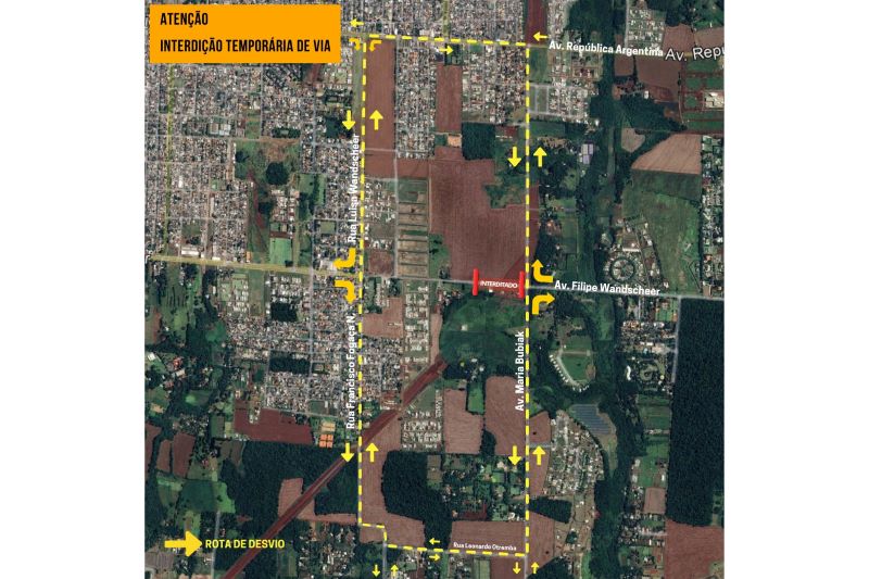 Usuários devem utilizar como rota alternativa a Avenida Maria Bubiak e a Rua Luisa Wandscheer, conforme indicado no croqui acima.