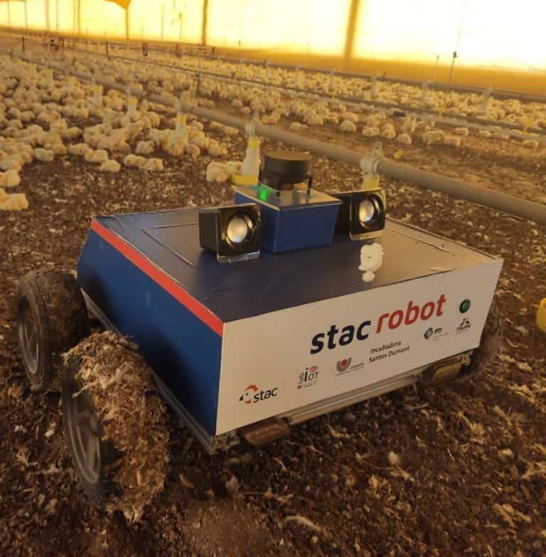 Trata-se de um robô semiautônomo com Inteligência Artificial (IA) embarcada, para otimizar o manejo de aves e monitoramento de aviários.