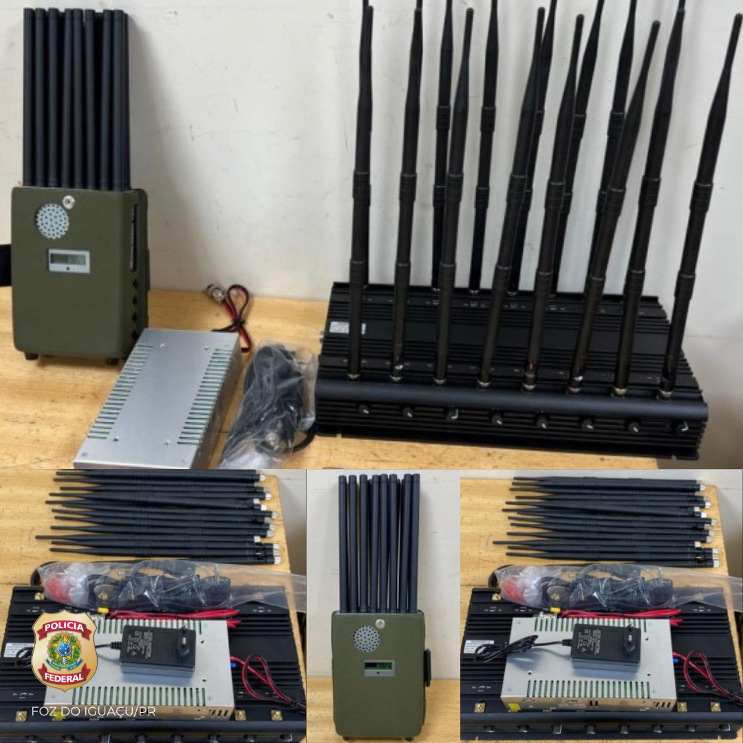 A operação teve início após a apreensão de dois bloqueadores de sinal de alta potência, localizados com uma mulher que se preparava para se deslocar de Foz do Iguaçu para São Paulo.