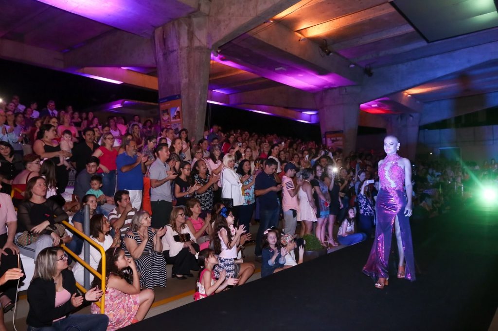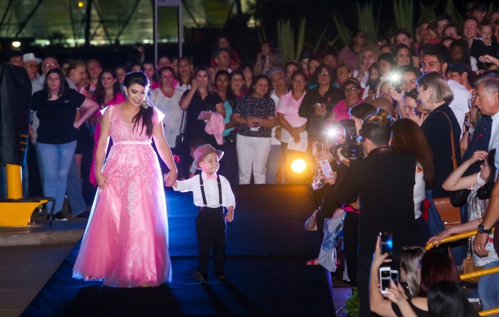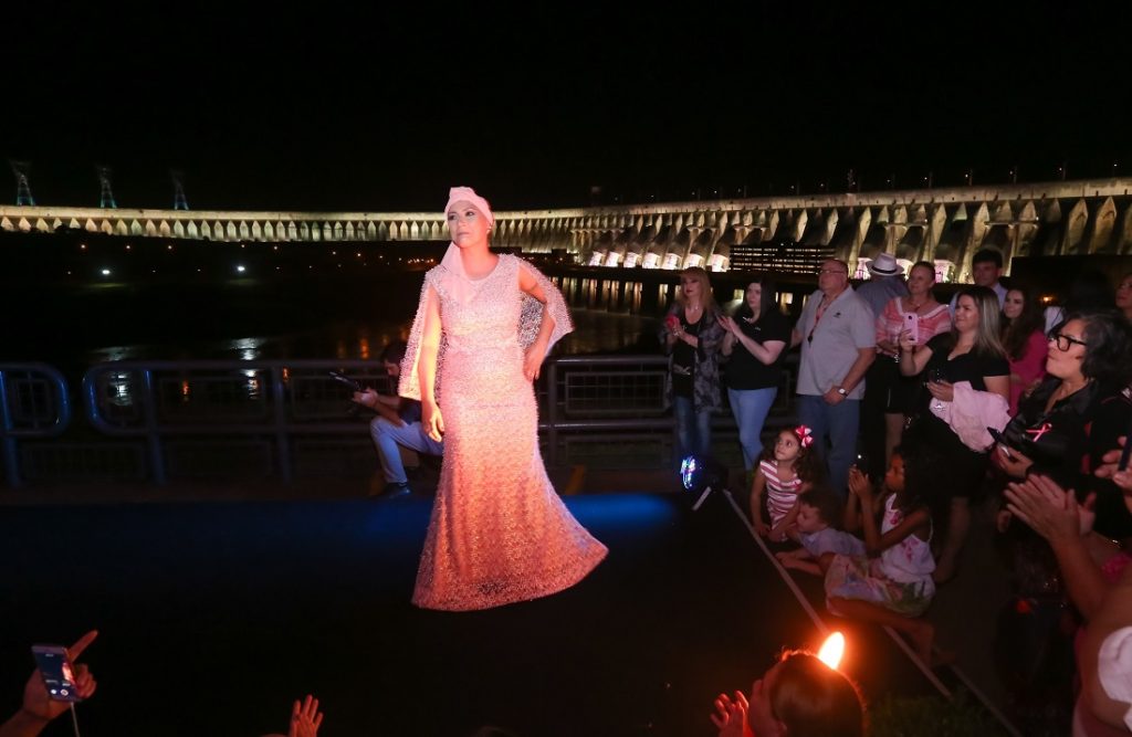 Diante da usina iluminada de rosa e sob os olhares de quase 800 pessoas, 12 mulheres em tratamento contra o câncer de mama participaram de um desfile alusivo ao Outubro Rosa, na noite dessa segunda-feira, (22), no Mirante Central da Itaipu.