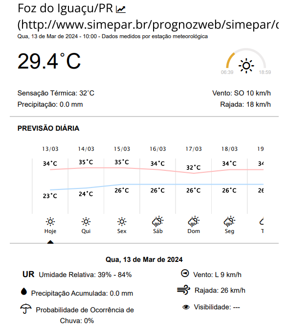 A única novidade em relação ao tempo em Foz do Iguaçu é a previsão de chuva no fim de semana.