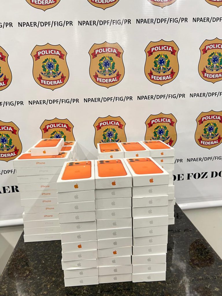 Na inspeção, foram encontrados aproximadamente 100 aparelhos celulares da marca iPhone, modelo 17 Pro Max, todos sem qualquer documentação fiscal. A carga foi avaliada em mais de R$ 1 milhão.