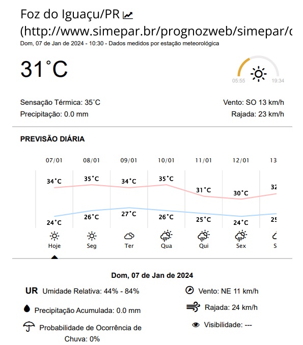 Domingo ensolarado em Foz e dia de muito calor: temperaturas entre 24 e 34 graus.