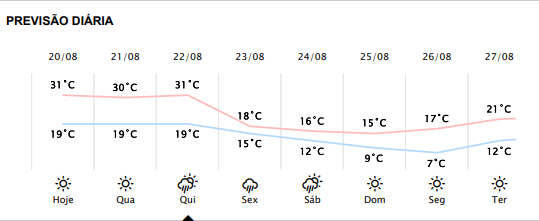Pequena onda de frio começa na sexta-feira, 23 de agosto