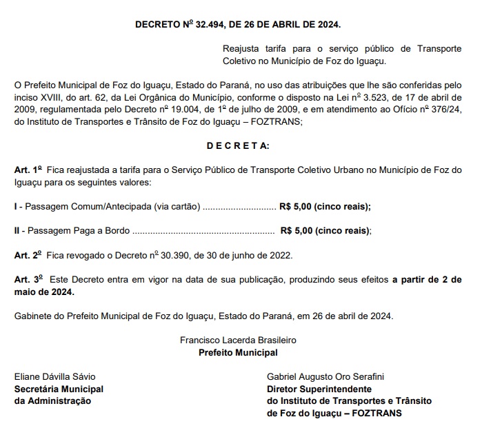 Veja o decreto abaixo.