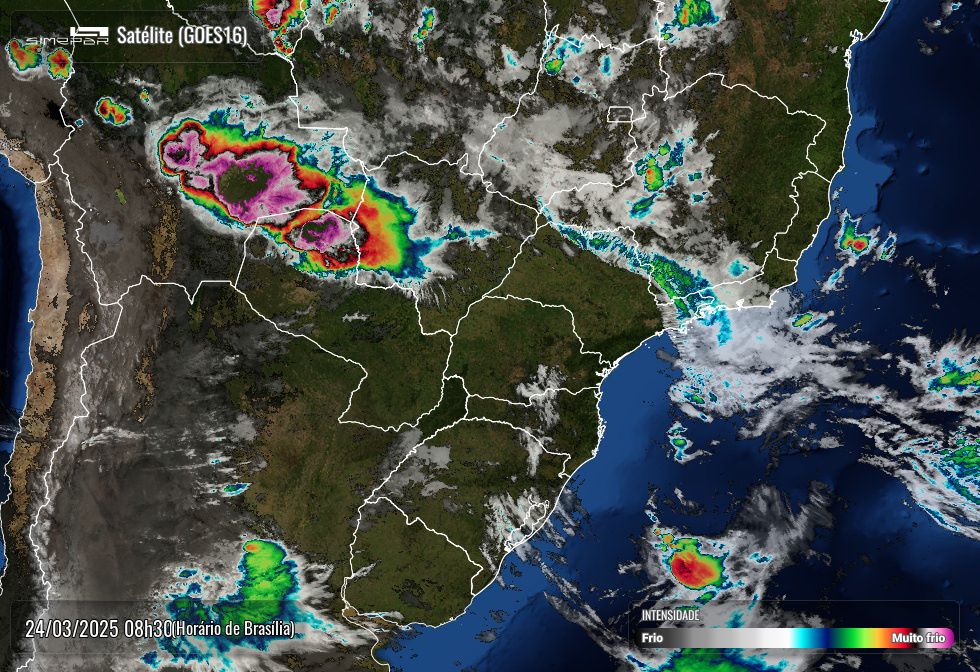 Segunda-feira, 24 de março, com previsão de pancadas de chuva e temperatura máxima de 30 graus.