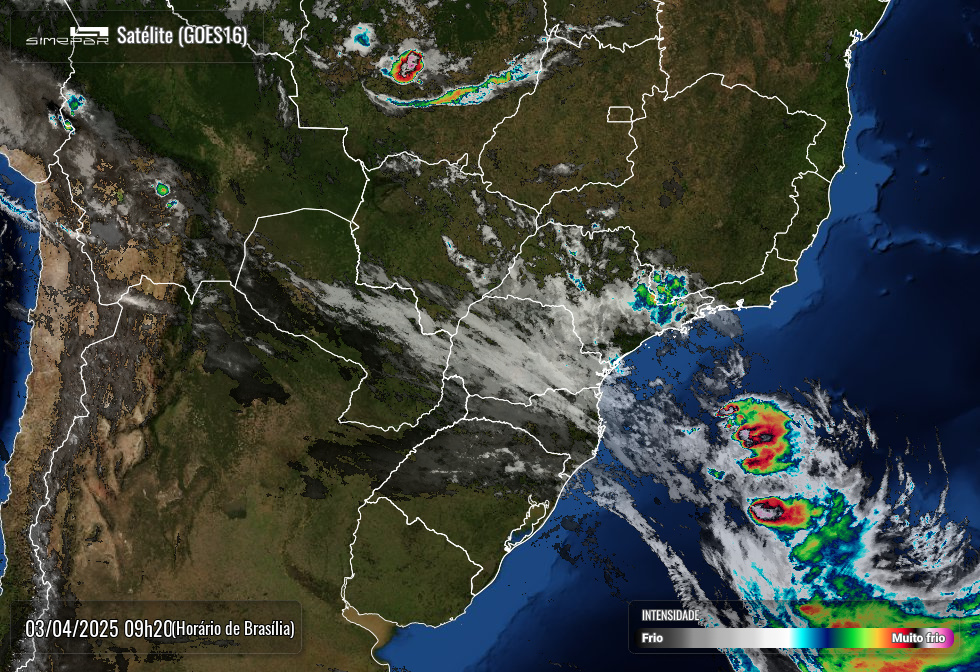 Nebulosidade sobre o Paraná na manhã desta quinta-feira, conforme mostra foto divulgada pelo Simepar
