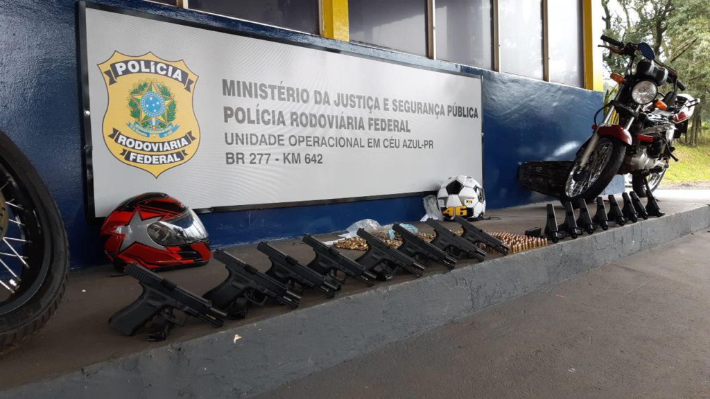A Polícia Rodoviária Federal (PRF) prendeu dois motociclistas que transportavam 16 pistolas e munições para fuzil em compartimentos ocultos de seus veículos no início da manhã desta quinta-feira (27) em Santa Tereza do Oeste (PR).