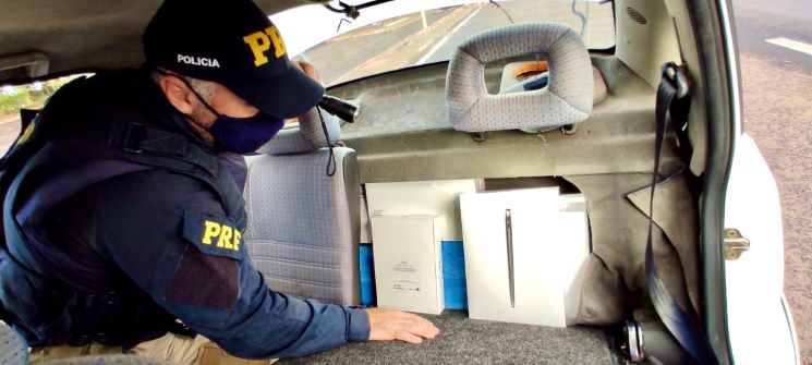 A partir de uma fiscalização em frente à Unidade Operacional, os policiais da União abordaram um automóvel, sendo flagrados diversos itens eletrônicos, como notebooks de uma famosa marca americana, escondidos em um compartimento no encosto do banco traseiro, sem o devido pagamento de imposto, sendo consumado o crime de descaminho (pena de reclusão, de 1 a 4 anos).