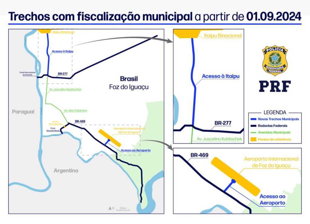 A Polícia Rodoviária Federal (PRF) e a Prefeitura Municipal de Foz do Iguaçu (PR) assinaram um acordo para municipalizar a fiscalização de trânsito nos acessos à Itaipu Binacional e ao Aeroporto Internacional de Foz. A assinatura ocorreu na manhã desta quinta-feira (29), em reunião com autoridades representantes dos órgãos envolvidos. A fiscalização municipal nos locais inicia no domingo (1).
