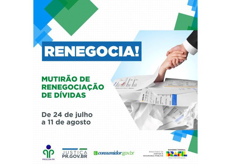 O Procon de Foz do Iguaçu participa, a partir desta segunda-feira (24), do “Mutirão Renegocia!”, que ocorre até o dia 11 de agosto, exclusivamente pela plataforma www.consumidor.gov.br.