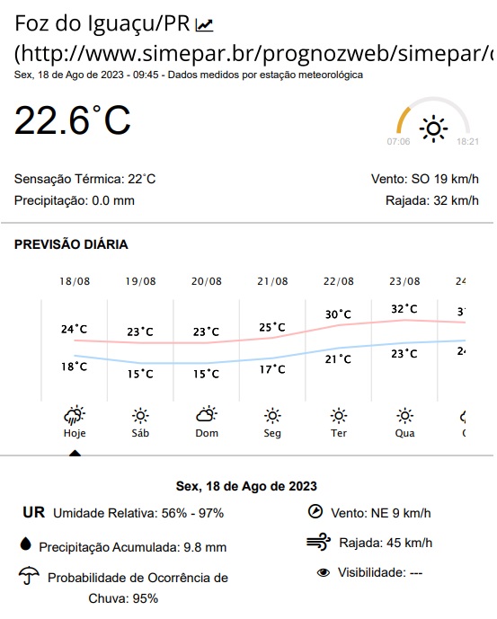 Nesta sexta-feira (18), a Defesa Civil do Paraná emitiu alerta para a ocorrência de tempestades na região de Foz do Iguaçu.