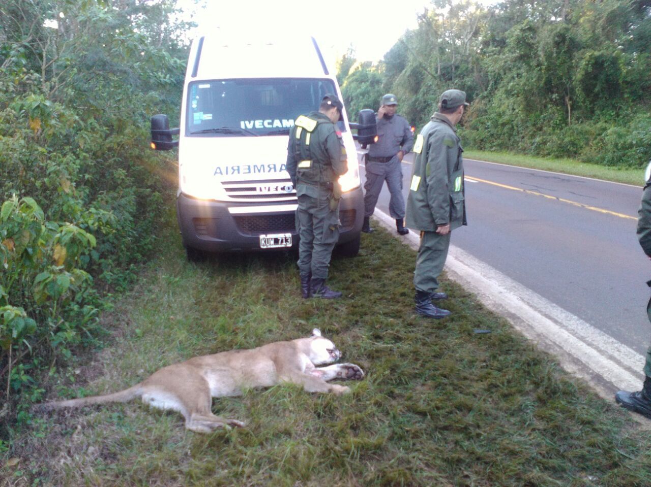 Na rodovia de acesso ao Parque Nacional Iguazú, na Argentina, mais uma vítima da sanha assassina de motoristas: um puma morreu atropelado.
