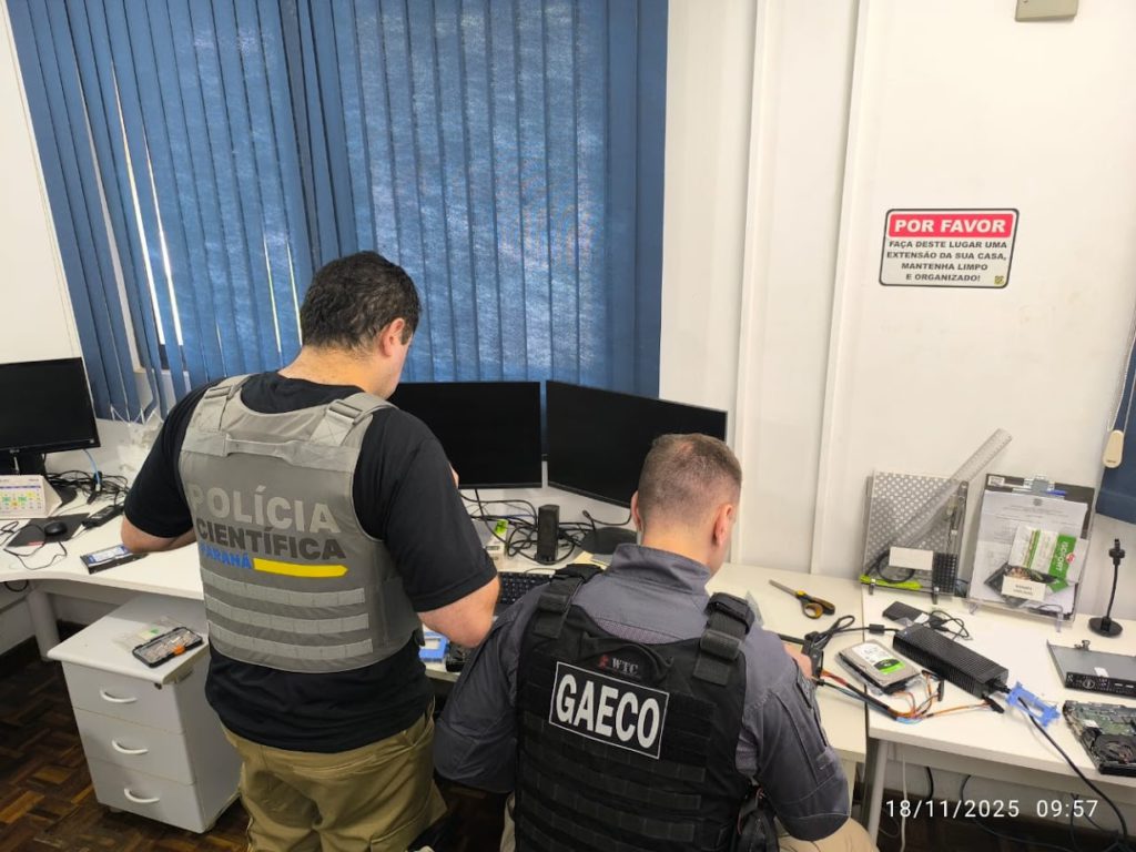 Também foram cumpridos mandados de busca e apreensão no Setor de Veículos da 6ª Subdivisão Policial de Foz do Iguaçu e na Unidade de Execução Técnico-Científica de Cascavel, vinculada à Polícia Científica do Estado do Paraná.