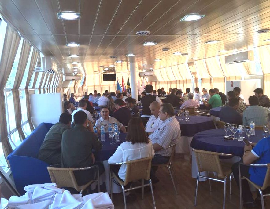 Ambiente mais neutro não poderia haver: no meio do Rio Paraná, dentro do barco Kattamaram II. Longe do trânsito e longe das aduanas. E com uma bela vista das três fronteiras.