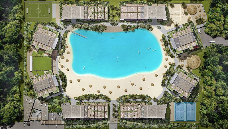 O condomínio está sendo construído em uma área de 32.000 m2, sendo mais de 15.000 m2 dedicados à praia, mais de 8.000 m2 para equipamentos interiores e exteriores, áreas desportivas e 600 m2 para área comercial.