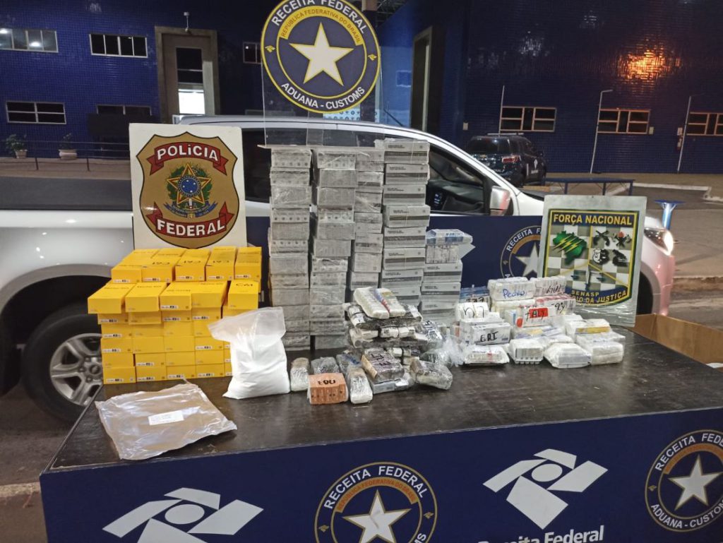 Na noite de sábado (02/11), policiais federais, servidores da Receita Federal e integrantes da Força Nacional foram responsáveis pela apreensão de três caixas contendo celulares e anabolizantes. A equipe de plantão, ao perceber uma movimentação incomum perto da Aduana brasileira, foram averiguar e perceberam que fardos estavam sendo lançados do alto da Ponte.