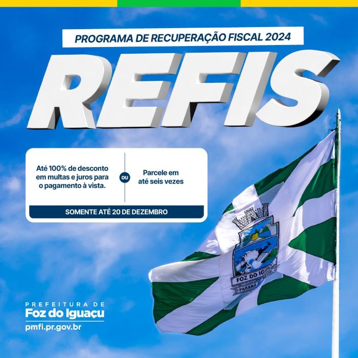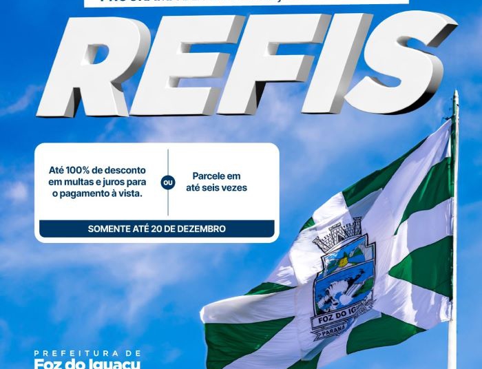 A prefeitura de Foz do Iguaçu informa que já está disponível o Programa de Recuperação Fiscal de Foz do Iguaçu – Refis 2024, com descontos de até 100% nos juros e multas para os débitos vencidos até 31 de dezembro de 2023.