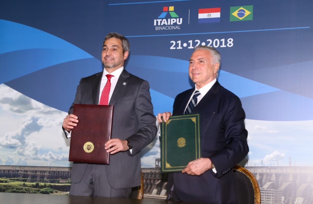 …o presidente Michel Temer assinou, ao lado do presidente paraguaio, Mario Abdo Benítez, uma declaração presidencial conjunta autorizando as obras da segunda ponte e da Perimetral Leste com recursos da Itaipu Binacional.