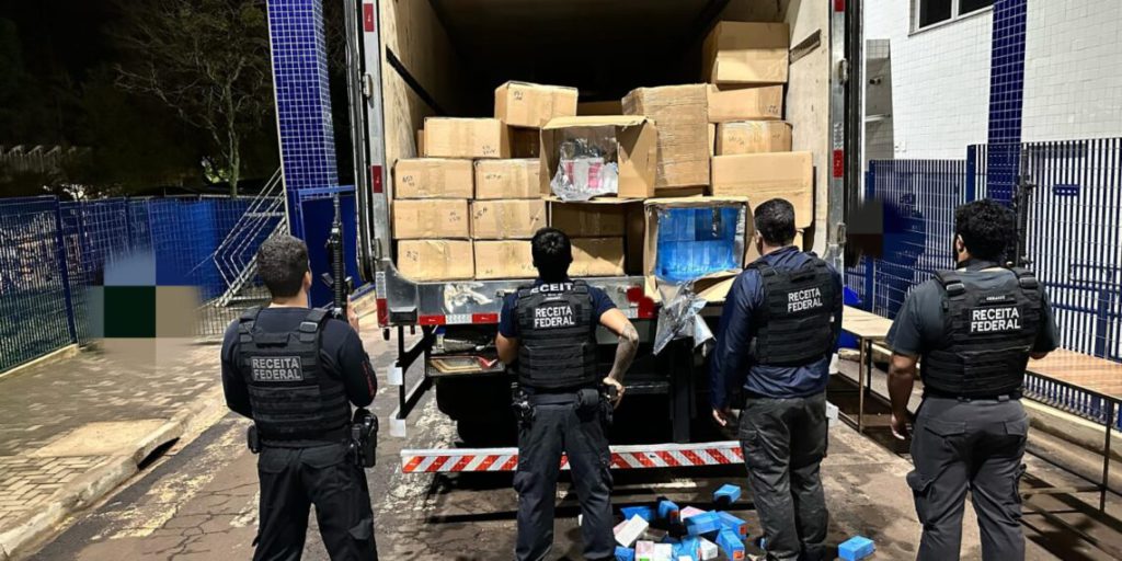 A Receita Federal apreendeu 2.200 celulares na madrugada dessa sexta-feira (25).