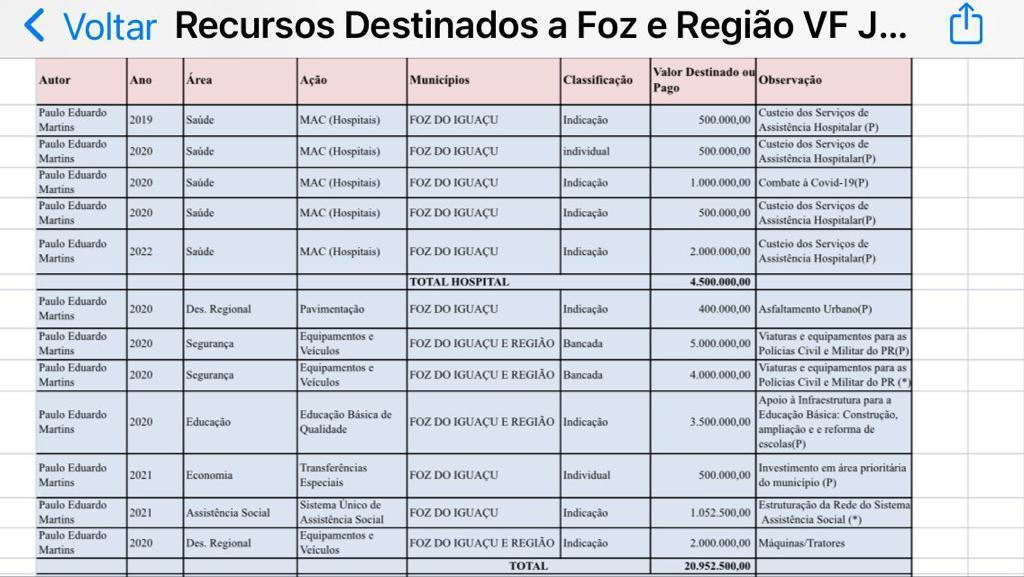 Martins, como deputado federal, destinou a Foz e região quase R$ 23 milhões