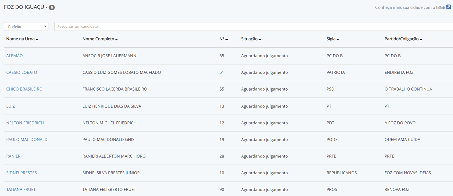 Segundo o portal da Justiça Federal, os candidatos a prefeito e vice de Foz do Iguaçu declararam os seguintes valores em bens: