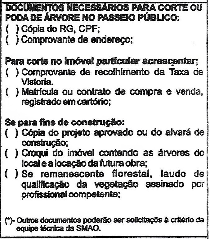 Lembrem-se que, a título de exemplo, para pedir o corte de uma simples árvores é preciso apresentar cópias do RG, CPF e comprovante de residência. Pra quê? Nem a prefeitura sabe.