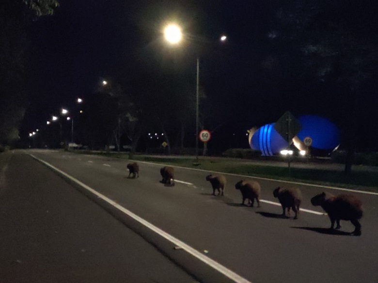 Fila de capivaras na usina de Itaipu. Foto: Romeu Bruns/JIE/Divulgação