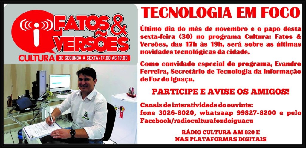 Será que, enfim, a Prefeitura de Foz vai entrar na era da Internet? Veja a resposta no Cultura: Fatos & Versões de hoje (30)