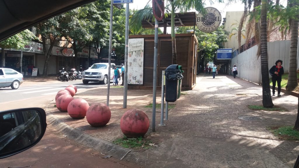 A foto abaixo foi tirada com o veículo estacionado em cima da faixa dos pedestres. Só assim é possível ter uma visão da Avenida  Brasil.