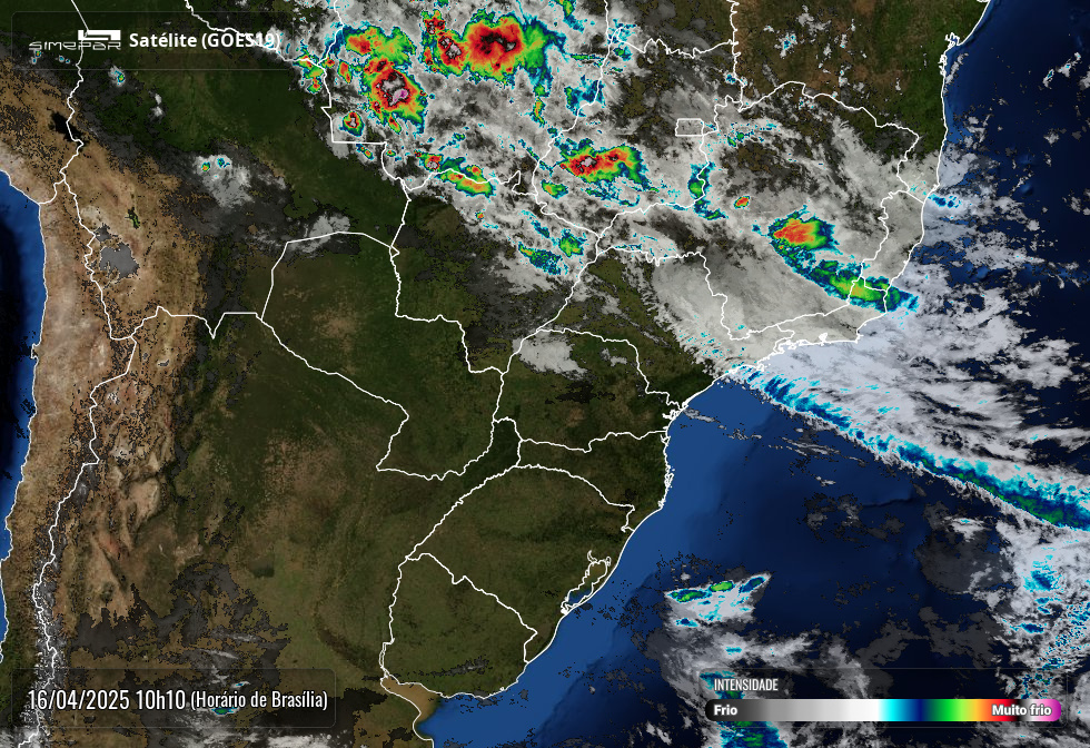 A foto de satélite publicada acima mostra que, até às 10h10, não há nuvens sobre o Paraná.