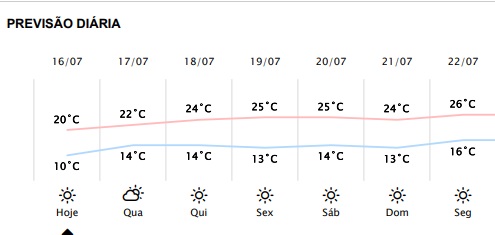 O Simepar mantém a previsão de dias ensolarados em Foz do Iguaçu até segunda-feira e temperaturas bem amenas.