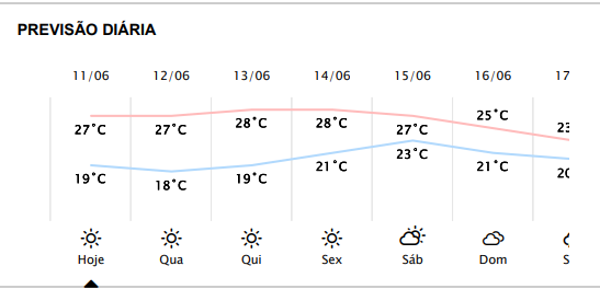 Esta terça-feira (11) deve ser ensolarada e, seguindo a tendência para a semana, com máxima de 27 graus.